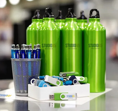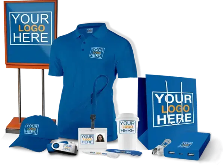 Branded apparel, custom giveaways, corporate gifts, drinkware, and tech accessories that keep your logo top of mind.